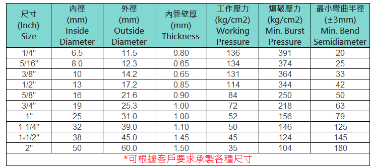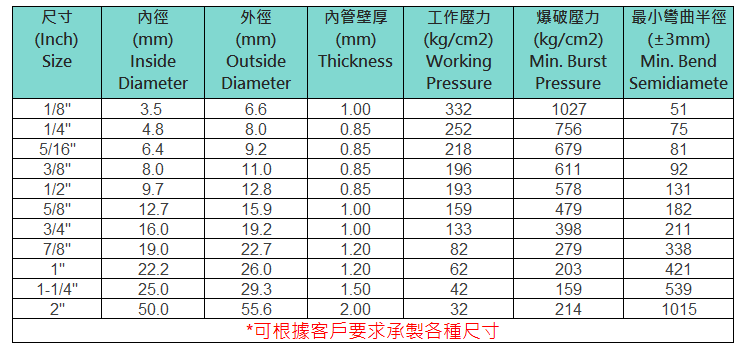 環境溫度、壓力、流體條件嚴苛時,鐵氟龍編織管可大幅提升管件耐壓性。 鐵氟龍平滑不鏽鋼編織管 / 鐵氟龍波紋不鏽鋼編織管 PTFE平滑不鏽鋼編織管 / PTFE波紋不鏽鋼編織管 編織蛇管 / 橡膠包覆管 / 特殊編織管 鐵氟龍耐高壓編織管 / PTFE耐高壓編織管