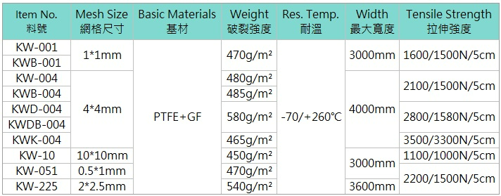 鐵氟龍玻璃纖維布系列